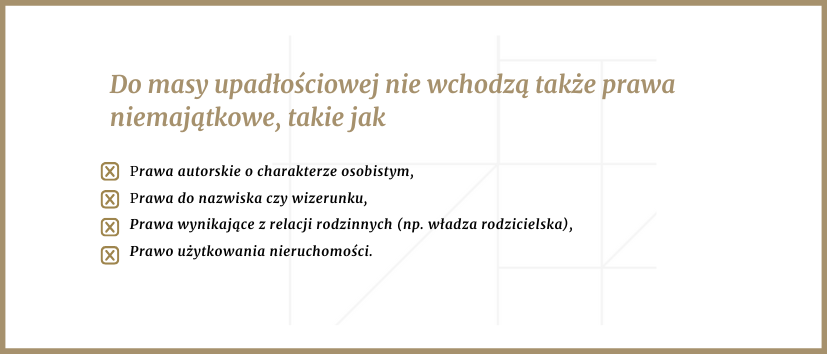 Do masy upadłościowej nie wchodzą także prawa niemajątkowe, takie jak: