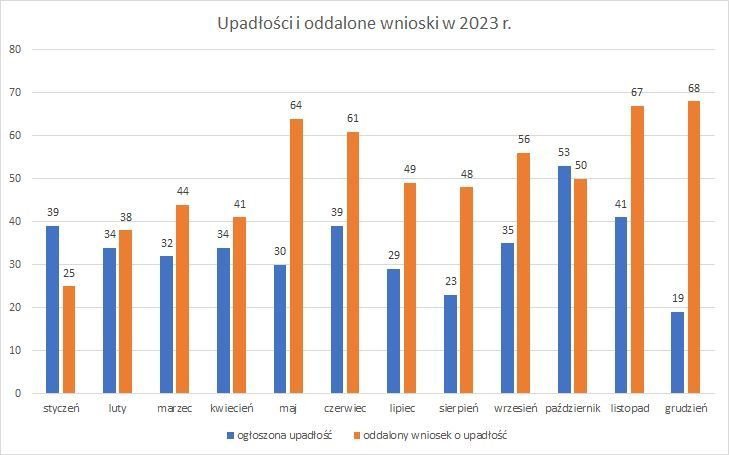 Rok 2023 pokazał, że upadłość firmy nie jest dla każdego. Ilość oddalonych wniosków o ogłoszenie upadłości jest wręcz przerażająca:
