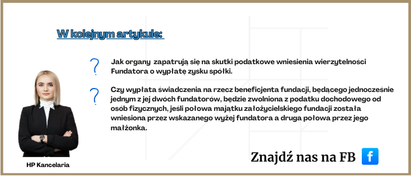- możliwość dalszego wpływu na losy majątku (np. jako członek rady fundacji),