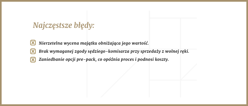 - wartość aktywów jest zbyt niska, by organizowanie przetargu czy licytacji miało sens (np. w przypadku zużytego mienia o niewielkiej wartości).
