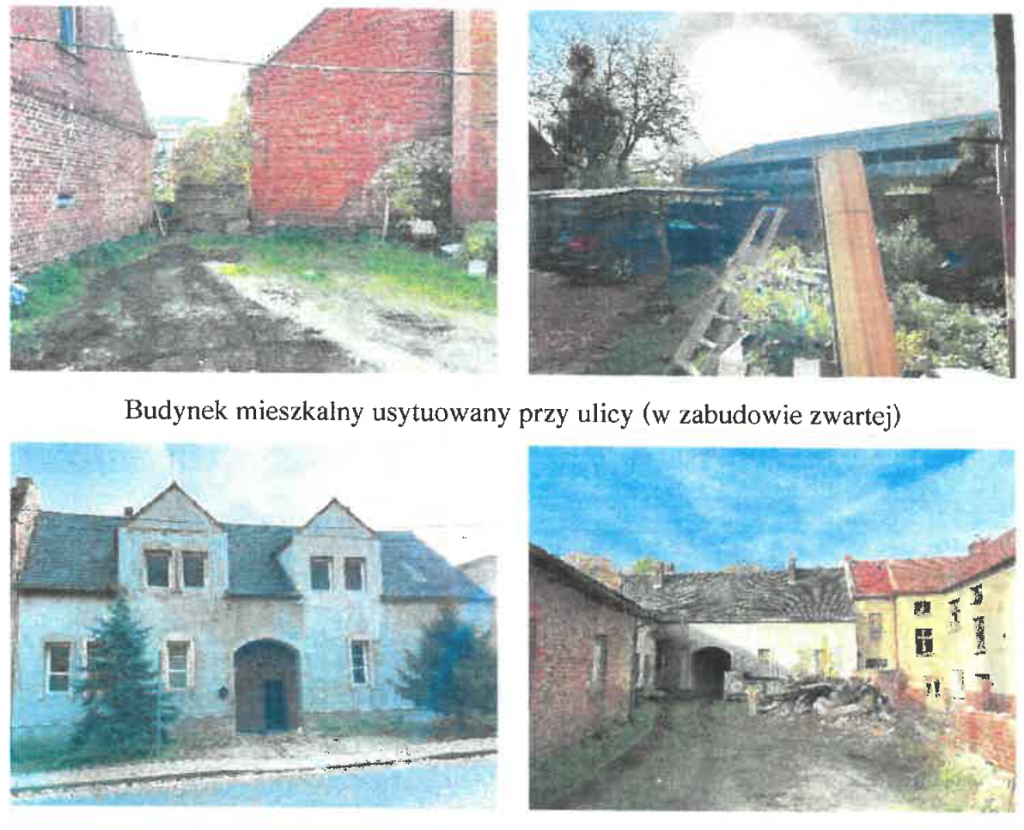 Budynek w zabudowie zwartej, podpiwniczony, piętrowy, ocieplony, z wydzielonymi dwoma lokalami mieszkalnymi o łącznej powierzchni użytkowej 175,55 m2. Budynek w zabudowie wolnostojącej o łącznej powierzchni użytkowej 54,4 m2 charakteryzuje się obniżonym stanem technicznym. Na działce znajdują się także dwa budynki gospodarcze o powierzchni zabudowy po 106 i 49 m2.