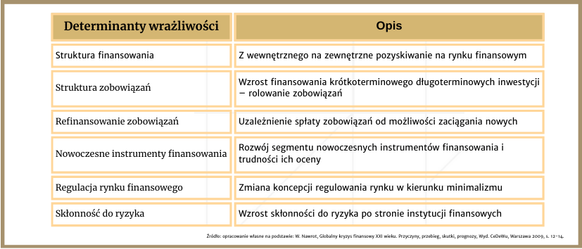 Tabela 1. Przyczyny wrażliwości współczesnego systemu finansowego